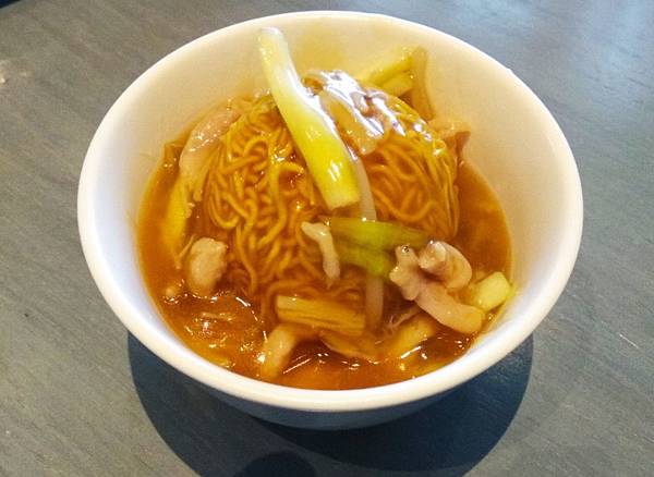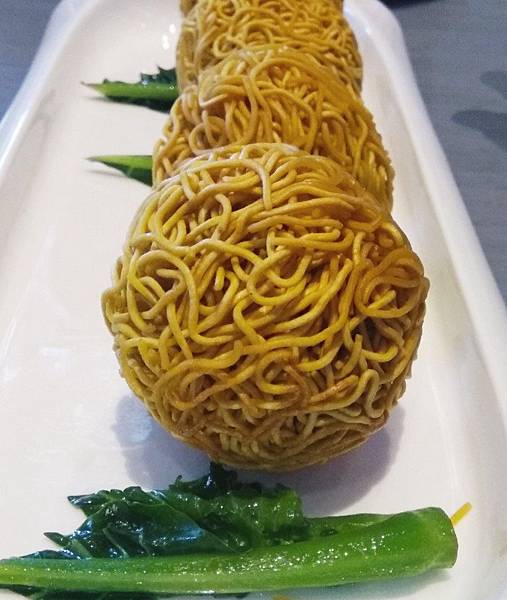 上湯瑤柱雞絲炒麵,顏質佳麵體不酥脆,尤其圓球中心,不酥不脆又韌,醬汁韭黃燴肉絲,平平沒什麼特色,麵吸了湯汁也無法入味