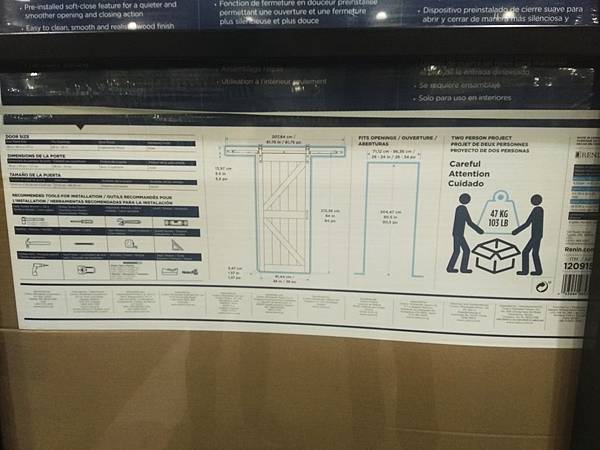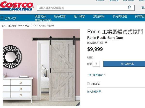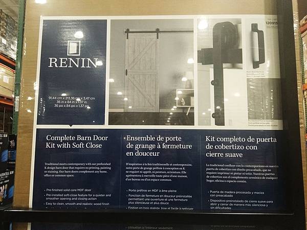 可惜好市多目前賣場只見到這款Renin工業風穀倉式拉門Renin Rustic Barn Door,商品編號:#1209157,官網同步銷售