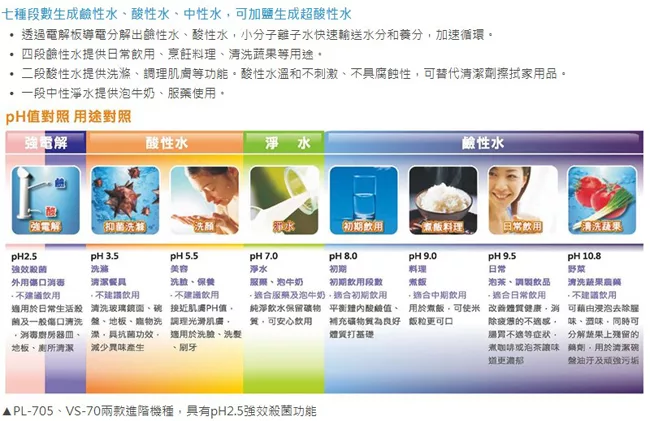 這台看起來滿厲害,可以生飲的淨水器主機近2萬元,每半年換濾心$4900,標榜可以生飲,但出水酸鹼分離,酸性和鹼性水要用2個容器同時接,酸性水用來洗臉、洗菜...,經常因為急用+酸性水量太多+取用麻煩而直接放掉,主機體積超大,放在流理台上好占空間,還需要插電,用了數年對於水質是否有比較好真的很無感,最有感的是,使用上有夠麻煩,買淨水器千萬別考慮這台