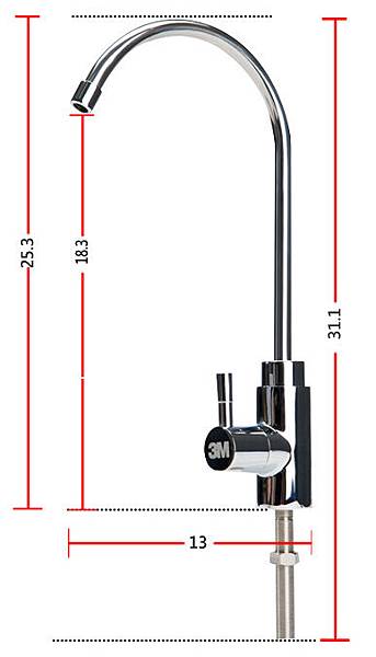 配件1,3M原廠水龍頭尺寸如下,因為直接安裝在流理台上,所以流理台要先找個適當的位置鑽一個小孔,我家是不鏽鋼水槽,所以先量水龍頭支架直徑,再買一個相同直徑的金屬用鑽頭