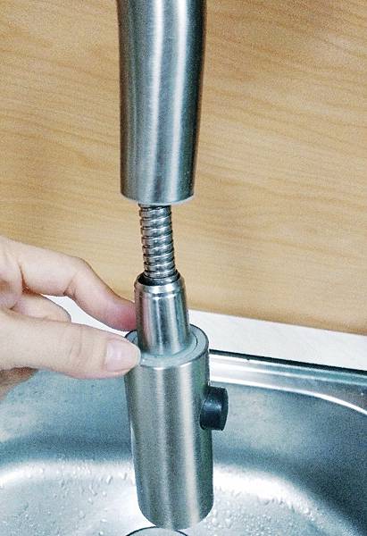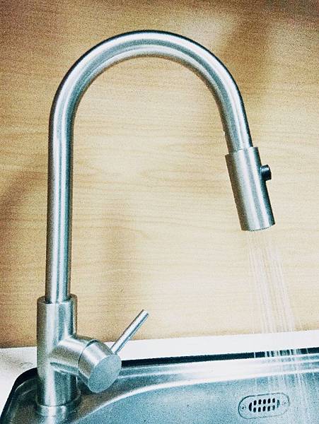 很多家中都是裝這種抽拉式花灑水龍頭,我家也是,不僅洗菜好用,沖洗流理台更方便,但接不了3M雙切頭淨水管