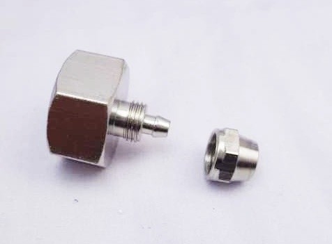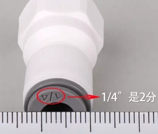 安裝配件3,接在出水口,用4分水管轉接頭1轉2+內4分牙的2分pe管轉接頭。材質有不繡鋼和pe的,我選不鏽鋼