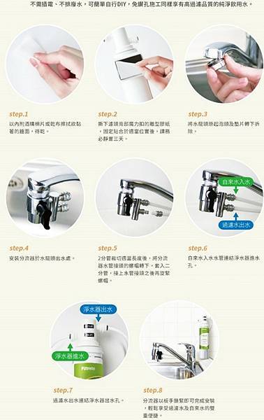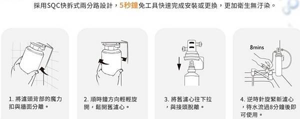 體積輕巧+安裝簡便+不需插電+換濾心超簡單