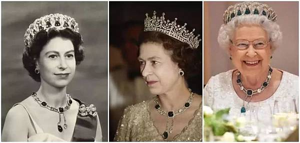 這條項鍊,最後傳給孫女伊莉莎白女王,所以女王從青春年少到白髮皚皚,每每出席重大場合時,總能在宴會上看到這抹頸上優雅