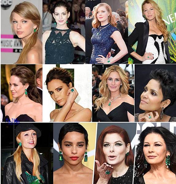 祖母綠深受皇室、明星們喜愛, 貴族約瑟芬皇后、維多利亞女王、溫莎公爵夫人到如今歐洲各國皇室貴族,巨星莉茲·泰勒、安吉麗娜裘莉、楊紫瓊、劉嘉玲等知名中外女星,無一例外都是祖母綠的粉絲。