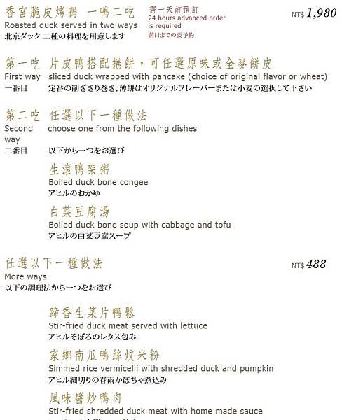 香宮,畢竟是五星飯店,當然也是標準五星價位,我家4人烤鴨餐大約9千左右