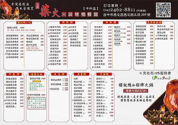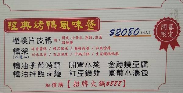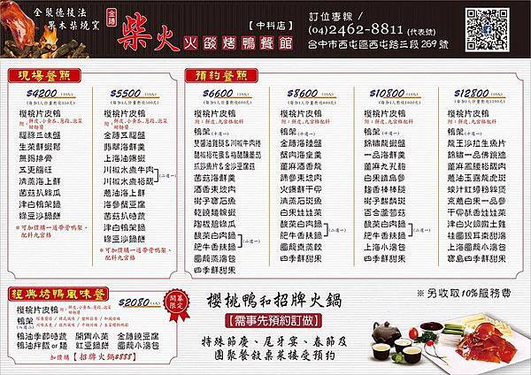 價格部分,柴火火焰烤鴨,當然親民許多,單點份量十足的櫻桃片皮全鴨竟然只要1080元,比台北任一家有名的烤鴨都平價,到台中不能錯過的平價美味