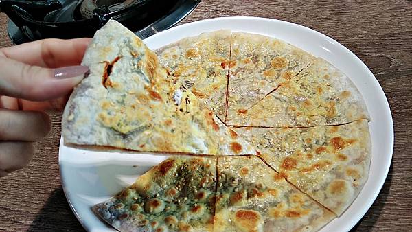 看起來油脂有點多,吃起來不會膩口,附手工餅皮、甜麵醬、蔥段、黃瓜,果香泡菜,櫻桃鴨油脂豐厚嫩香,薄餅皮Q度佳,刷上甜麵醬放一片鴨皮、鴨肉,搭配蔥段、黃瓜,入口層次豐富不油膩,很好吃,但戰鬥力實在有限,4人半盤片鴨已經極限了,其餘全部打包