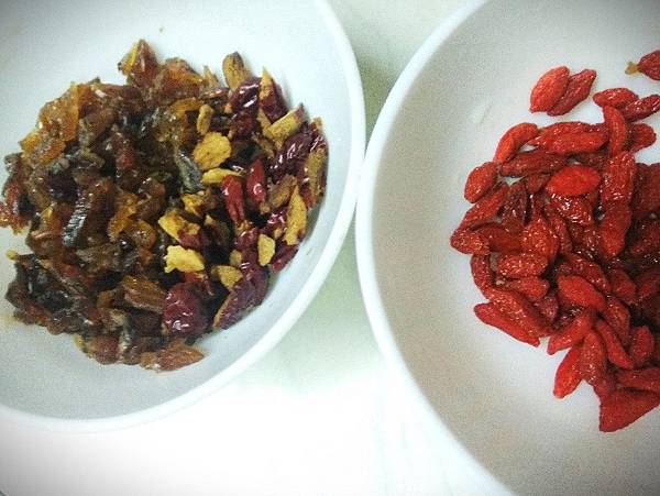 8.上面鋪上桂圓乾、紅棗、枸杞子、黑糖