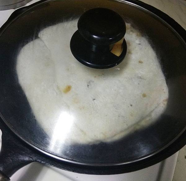 13.開最小火後待鍋熱透,蓋上鍋蓋慢慢炕,鍋蓋裡面若出現蒸氣時,記得要擦掉再蓋回去