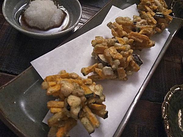 炸物,用當次料理剩餘食材製成,完全體現不浪費食材的概念,日本炸物經常沾著蘿蔔泥醬油吃,可以去火解膩提升香氣