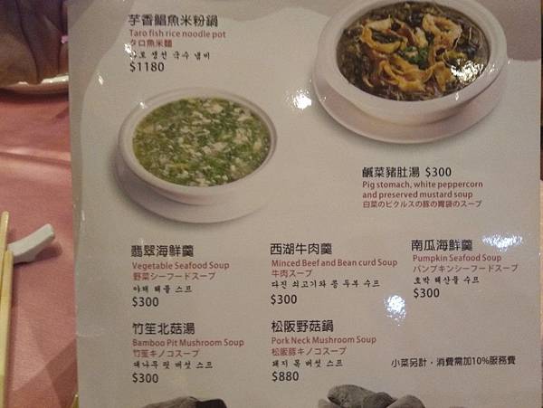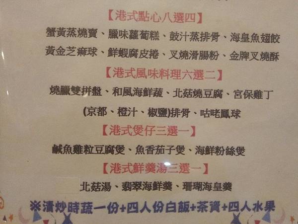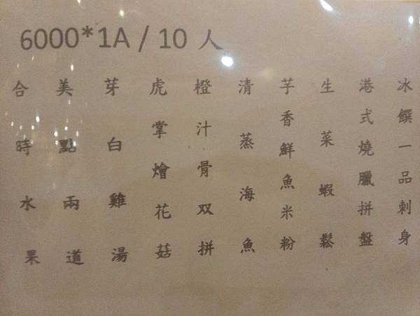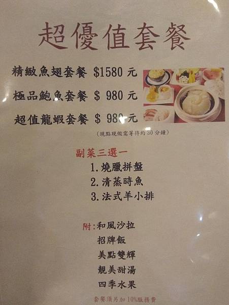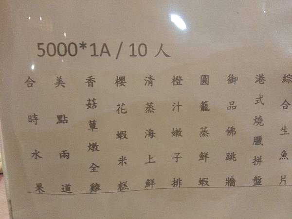其他菜單,台北市竟然也有1桌5000元的桌菜,也只有老牌餐廳會推出這種經濟價位,聽說佛跳牆味道很好