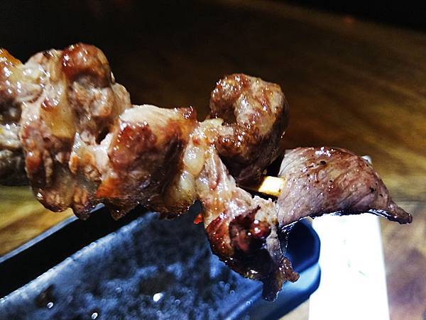 牛肋串牛筋很韌,油脂豐厚很香,但油過多,吃一整串感覺膩,後來改良,切得較薄吃起來爽口一些
