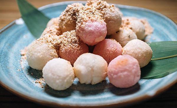 炸團子  50元,因為店長自己愛吃這味,逼老闆一定要賣這道,用客家手工小湯圓為底材,炸起來外酥內Q軟,沾上花生糖粉 ~ 美味,不過有點像吃喜宴。。。