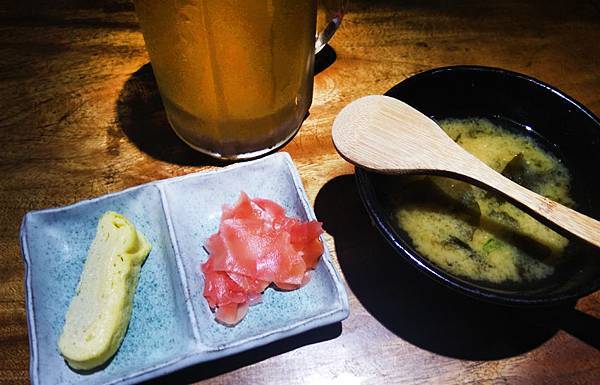 鰻魚飯附味噌湯、薑片、玉子燒,玉子燒似乎我做的味道比這裡好,因為我做的的玉子燒厚實內含高湯鮮甜,這裡的吃起來咬感太空虛~呵呵