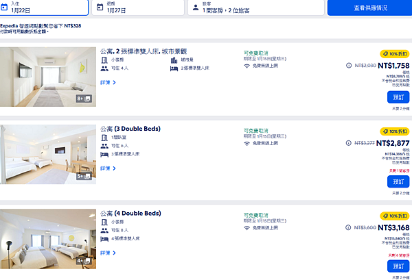 以前習慣在Agoda訂房,自從在Agoda遇見詐騙房東後,對Agoda已經失去忠誠度,開始在智遊網訂房,現在訂房時都會把這2個網站稍微比一下,2床4人房26平方米,住2-4人價格都一樣,26平方米大約8坪的4人房,農曆年6天5夜,AgodaNT$ 10,297.5(¥ 37,485),智遊網NT$11,356,第一次遇見日本飯店,房間不計人數的飯店,農曆年這種房價實在非常便宜,若這房型住4人4件行李廂箱會感覺很擠,智遊網顯示房價單價比較低,但是點進去訂房之後 ,總金額比Agoda高,雖然價差不大,訂房前還是要看仔細。