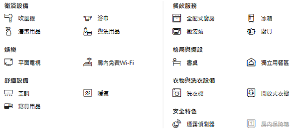 房間設備有這些,沒有保險箱,電視有Netflix( Netflix總公司在美國,提供全球網路隨選串流影片OTT服務,類似HBO的意思, 但比HBO提供更多電影選擇 )