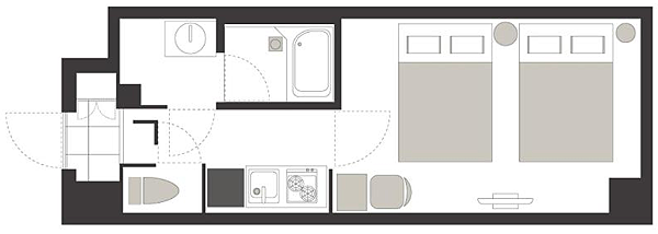 2張150CM雙人床房,這是最小的房型, 客房面積:26平方公尺(=7.87坪),日本這算坪數大的房型,一般日本標準人床是120CM,Nico Hotel 150CM雙人床睡起來真的會比較舒適