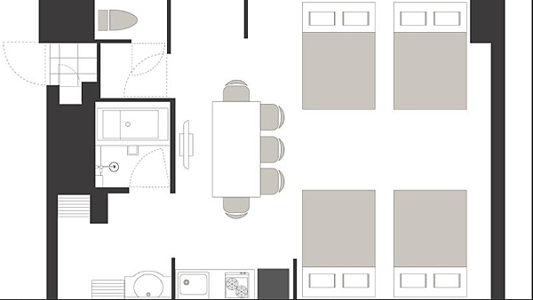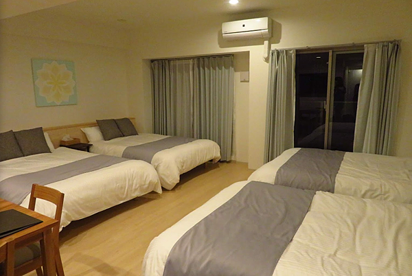 4張150cm雙人床房,客房面積:51平方公尺(=15.4坪),最多可住8人