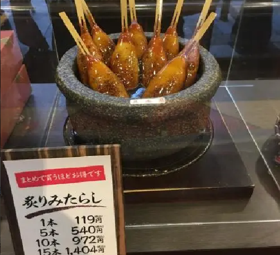現烤的超Q糯米丸、醬汁超對味,很容易看到看到人手一支, 炙りみたらし 1本 119円, みたらし5個入り 540円
