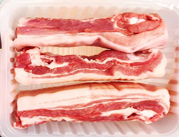 我家喜歡瘦肉多的五花肉,買回來後冷藏一下再切,可以切得比較方正,做出來成品也會較美