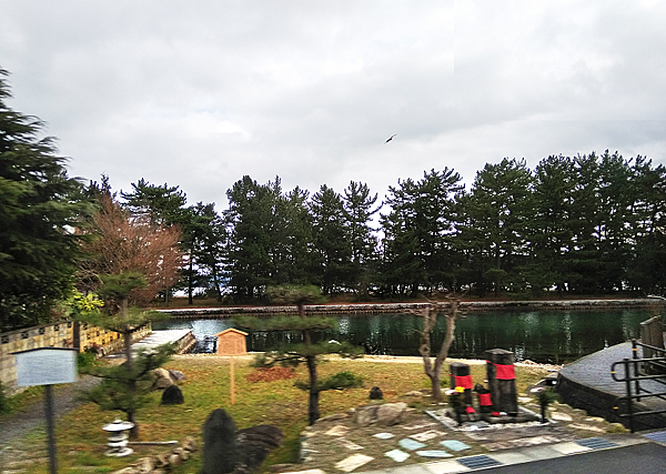 這區就有2家著名的老字號溫泉旅館,真是地靈人傑,回到正題,行程到達的第一個點-天橋立:日本旅遊介紹常見到旅遊百選,例如「日本之道百選」、「日本名水」...,只要有進入日本「百選」,就會成為熱門旅遊點,天橋立區中就有8個在百選裡面,包括「名松」、「名水」、「道」、「白砂青松」、「渚」、「歴史風土」、「歴史公園」、「地質」,感覺這裡是很厲害的景點