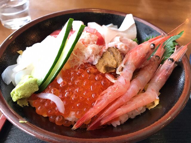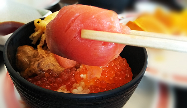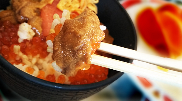 這種等級的海鮮蓋飯最便宜的木津市場少說也要2000円 看木津市場點我 ,而且大家都不只吃一碗,這吃法實在太豪邁奢侈了,食物擺盤真的很重要,看起來可口,吃起來更美味,大家大快朵頤動起來,隨興狂吃吧
