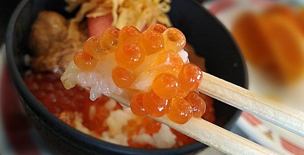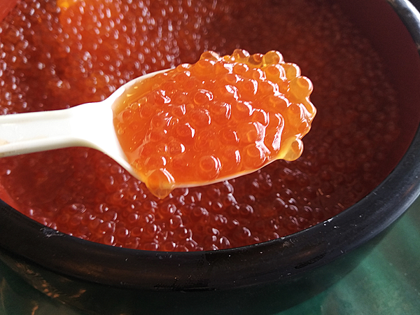 亮晶晶的鮭魚卵鮮甜無腥味,配上Q彈米飯,連不敢吃鮭魚卵的我都開戒的吃了