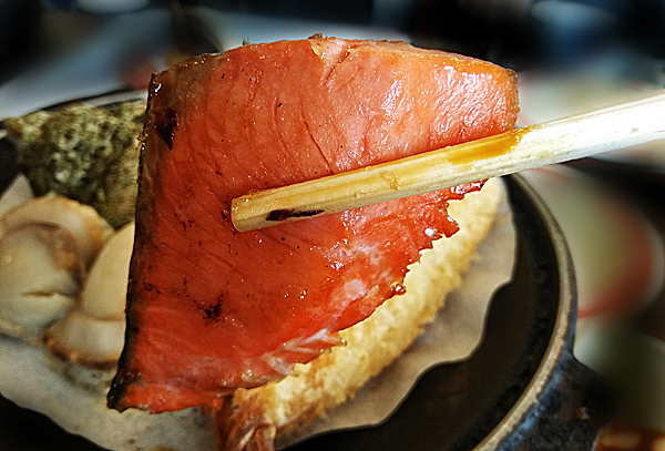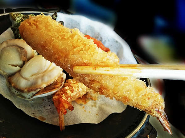 這個炸蝦雖然是溫的,外衣挺酥脆也滿好吃,不過吃之前,放在烤盤上再烤乾一點,咬下去會卡滋卡滋,更美味,日本的炸物基本上的外衣都很香脆