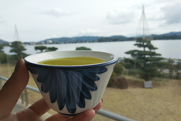最後,倚著窗邊賞海景,來杯日本綠茶 ~ 再也吃不下了
