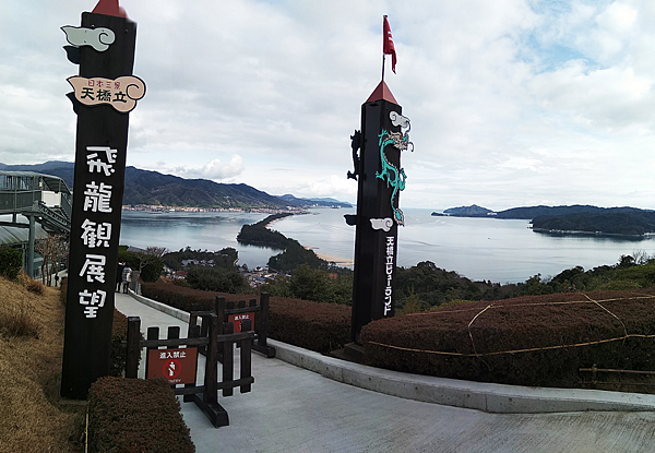 從天橋立景觀樂園看出去的景觀稱為「飛龍觀」,從傘松公園看出去的景觀則稱為「昇龍觀」。