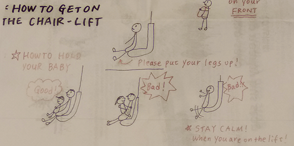 領隊畫的搭單軌纜車需要注意安全解說圖,看圖就知道是位可愛的人