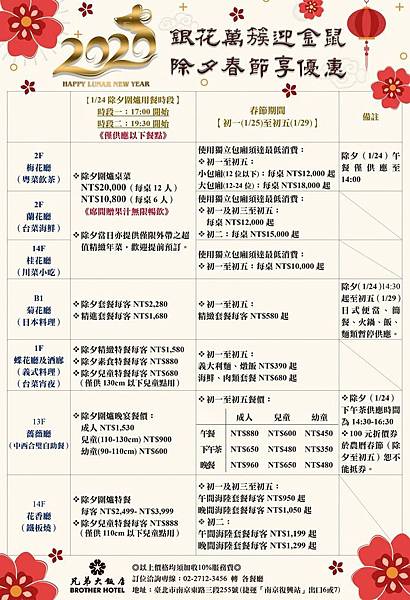 初三~初五訂位:於2個月前開放網路及電話訂位。