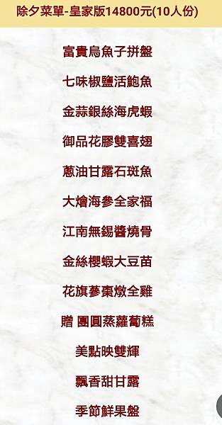 除夕團圓菜單↓↓↓↓↓↓↓↓↓↓↓↓