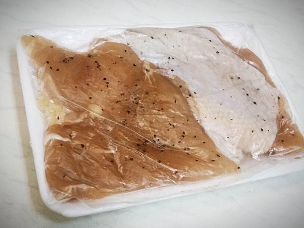 雞胸肉買回來趁新鮮先鹽漬,隔天微煎