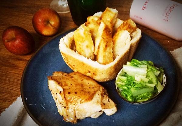 喜歡自己只用麵粉、水、天然酵母烤的吐司,能吃到最原始的麵香,把很平凡的麵包,切成條狀,放入塗了奶油的鑄鐵鍋,讓四面沾上香噴噴的奶油,均勻噴上植物油,烤箱180度烤8分鐘,很少的用油量就能成為滿是奶油香吐司棒,最後淋上花香調蜂蜜,溫熱的送入口中那一聲“卡滋”,讓人非常有溫度的幸福感。。。神奇卡滋卡滋吐司棒,讓人一口接一口欲罷不能,連裝吐司條的麵包盒都是酥脆,也會一併被吃的精光,很適合全家都賴床的假日極簡Brunch。