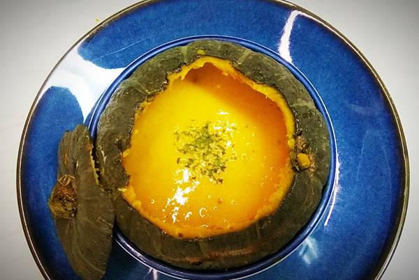 1.整顆南瓜蒂頭處切一個口
