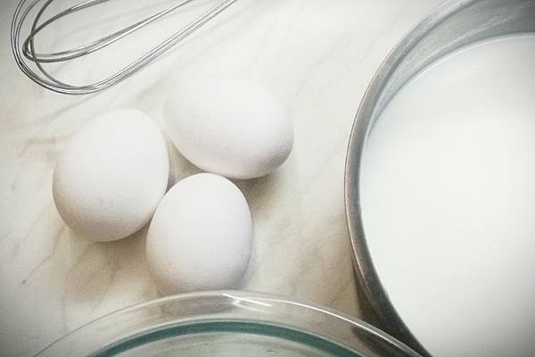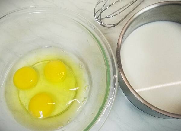 4.蛋液倒入牛奶中,用稍微攪拌混合拌勻