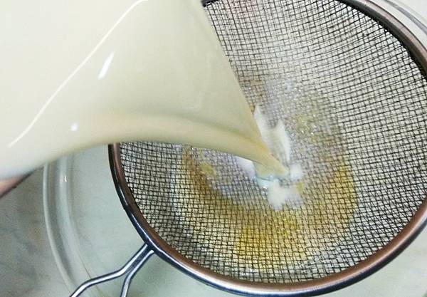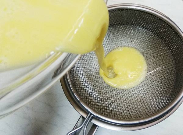 過篩幾次後會,蛋液和牛奶會越來越融合