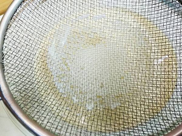 5-6次後,篩子上的蛋白殘留會越來越少,布丁液越來越細