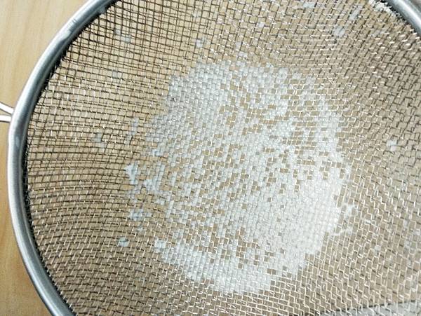前幾次篩子上都會殘留少許蛋白,有些教法說捨棄,有點浪費,沒有必要捨棄,用打蛋器將蛋白完全刮下去