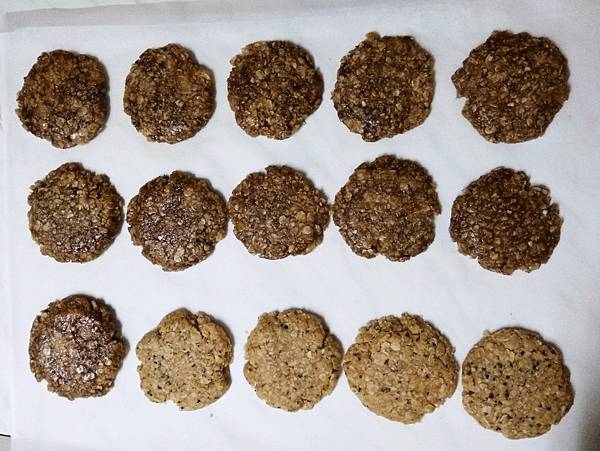 ♡以上份量,可做15片。可可燕麥餅11片,玫瑰鹽燕麥餅4片