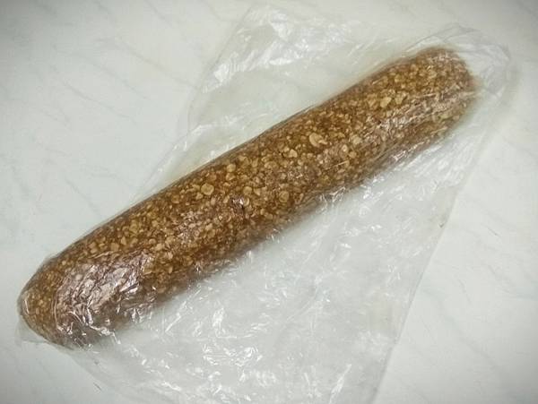 (5.)餅乾團放入塑膠袋中揉勻,搓成長條