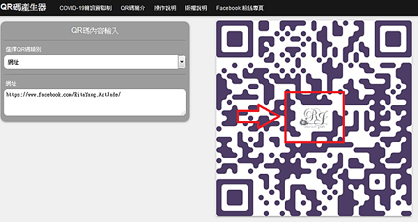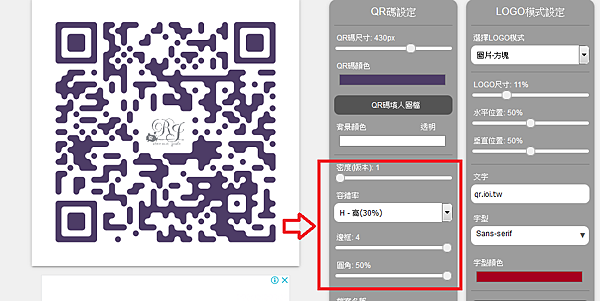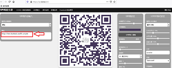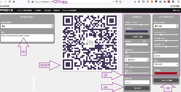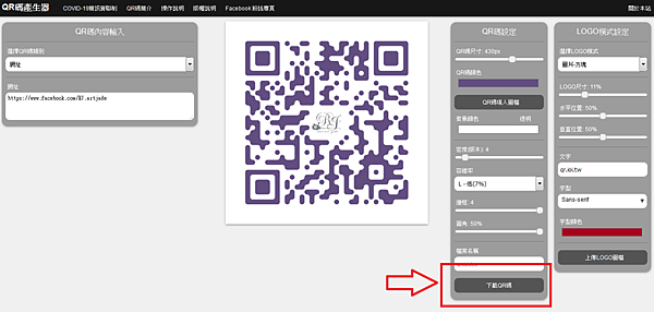 "箭頭(3)"可以上傳你的LOGO,或打字放在QR code裡面