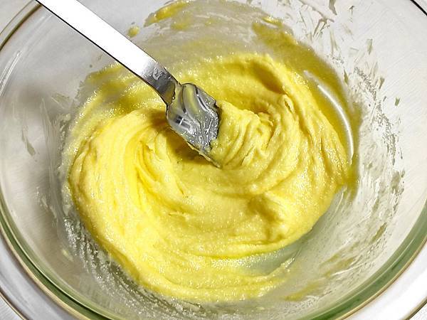 加糖後再攪拌,這是接近拌勻的樣子,還需要再打滑順一些