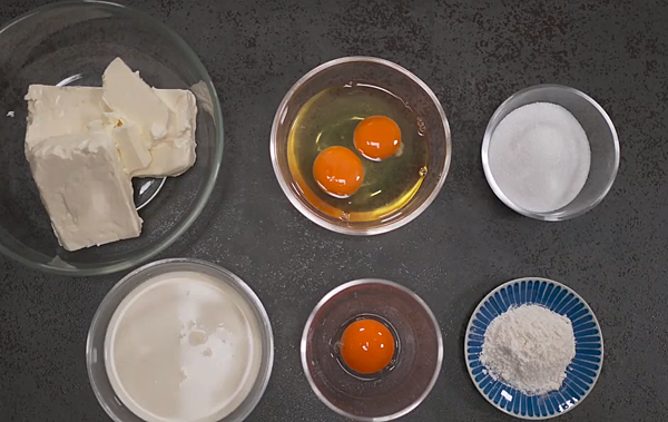 材料 : 奶油乳酪 350g、奶油 150g、白砂糖 150g、雞蛋 3顆、玉米粉 10g、檸檬汁2g