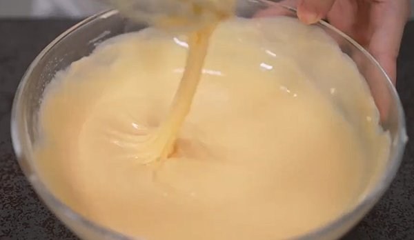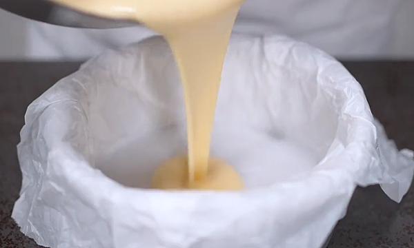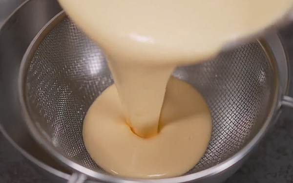 7.拌好的麵糊過篩,倒入烤模中,輕敲幾下震出空氣