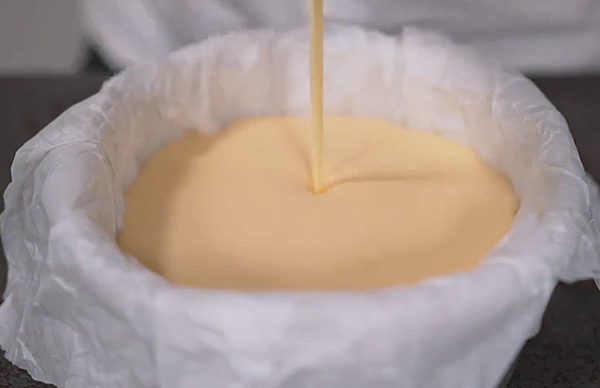作法: 前置, 烤模中鋪烘焙紙,很隨意地塞進去,做出來的蛋糕,看起來就會比較狂野,烘焙紙邊需高出烤模1.5~2英吋。