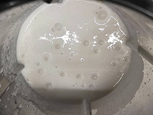 破壁機打成漿,怎麼確定將是否夠細,不需先濾過,只要取一點點漿用大拇指和食指捏一下,沒有顆粒感或有很小的顆粒但一捏就粉碎,這樣蒸熟後就完全化了,但前提是糯米泡的軟化了