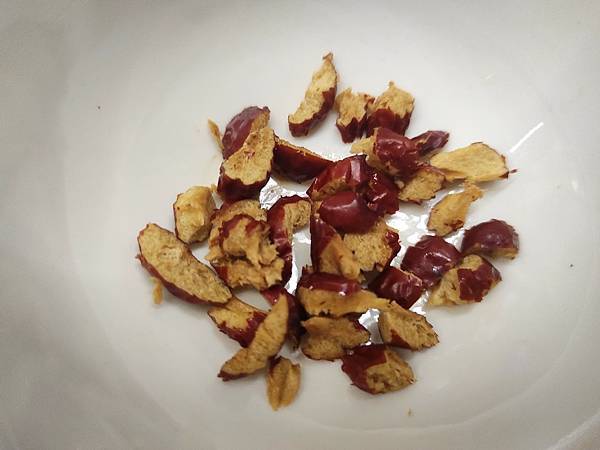 紅棗、桂圓洗淨剪成小塊裝狀,枸杞洗淨、陳皮剪成非常細的細絲小小段